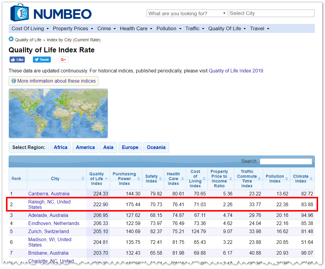 • Raleigh, NC — на ведущем месте по качеству жизни в мире!